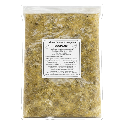 Ambalajul economic de 2,5 kg este perfect pentru restaurante, catering și unități de alimentație publică, reducând pierderile și timpul de procesare în bucătărie. Produsul este gata de utilizare după decongelare, fiind ideal pentru salată de vinete, zacuscă, creme tartinabile sau preparate tradiționale și mediteraneene.